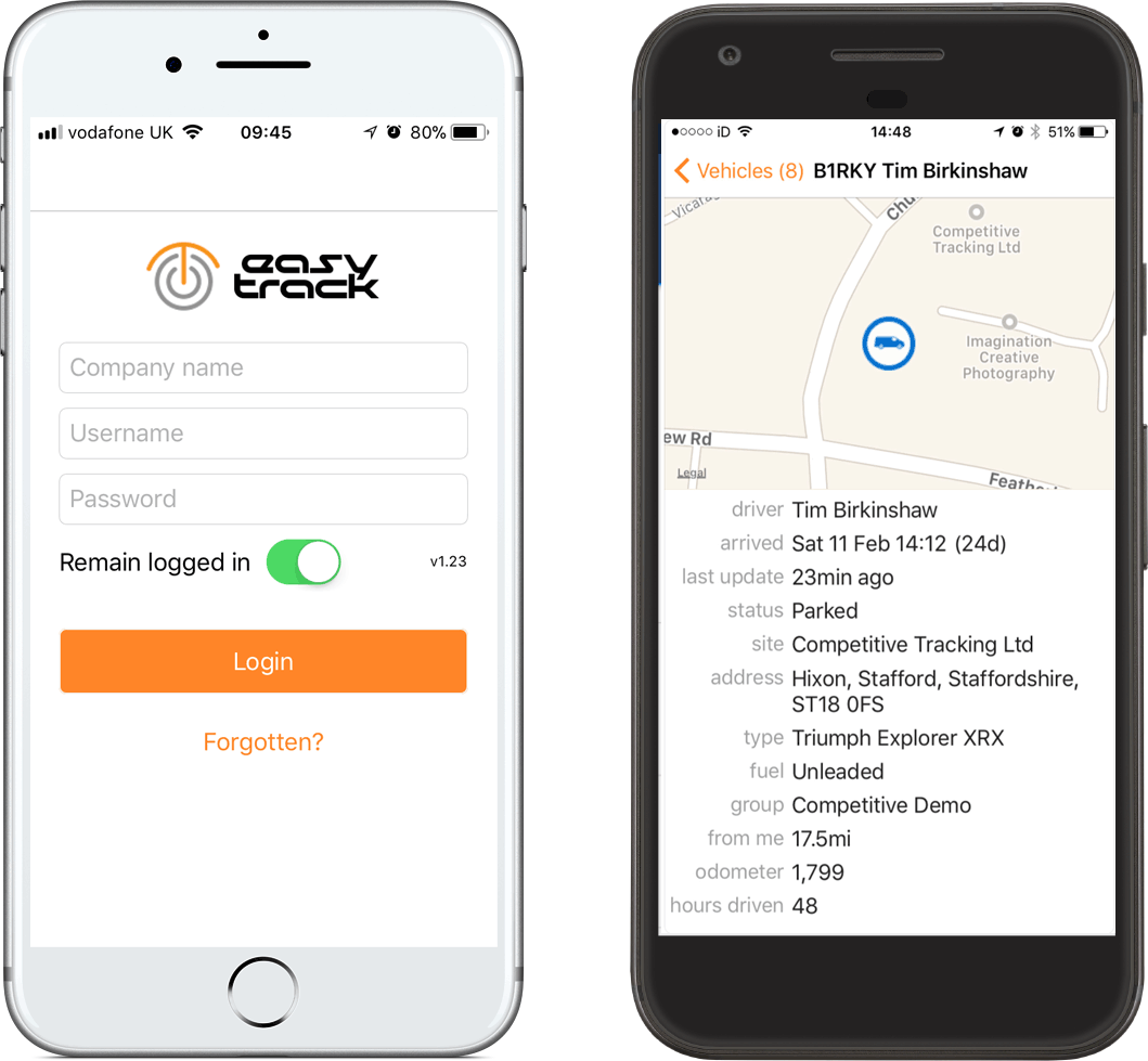 Track your vehicles and fleet on the go with the EasyTrack IOS & Android Apps.